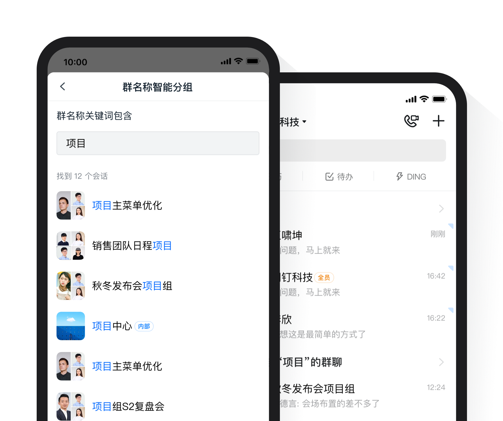 組織數字化 > 溝通 即時溝通 DING 視頻會議 電話會議 辦公電話 群直播 專注模式 互動消息 紅包主題 釘釘標簽 看看 圈子
