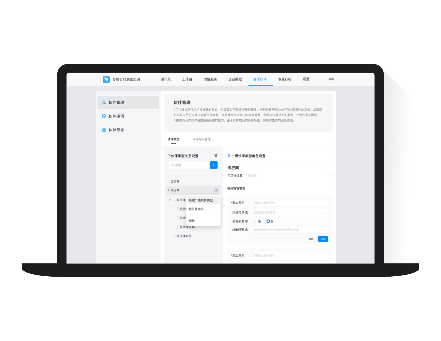 伙伴類型設置、批量邀請伙伴