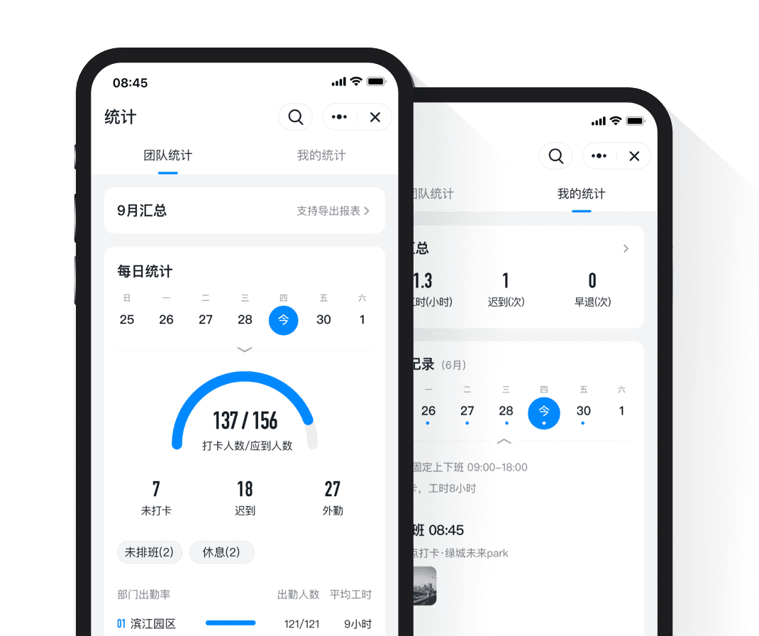 老板隨時(shí)了解團(tuán)隊(duì)狀態(tài)出差在外,通過(guò)手機(jī)統(tǒng)計(jì),也能隨時(shí)了解團(tuán)隊(duì)狀態(tài),遲到加班一目了然。