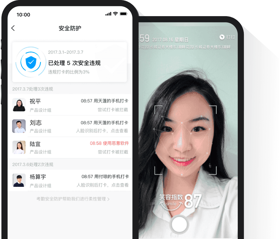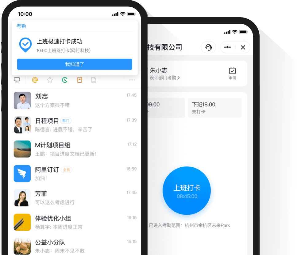 員工人性化考勤上班時(shí)間到公司,打開(kāi)釘釘自動(dòng)打卡,再也不用擔(dān)心忘打卡了。